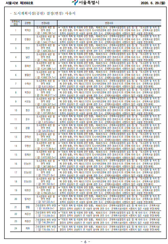 [News]서울시 공원부지 장기미집행 도시공원 도시관리계획변경 결정고시 (지도포함) 본문
