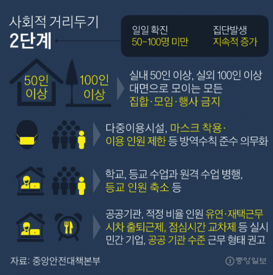 가장 높은 단계의 사회적 거리두기인 3단계는
