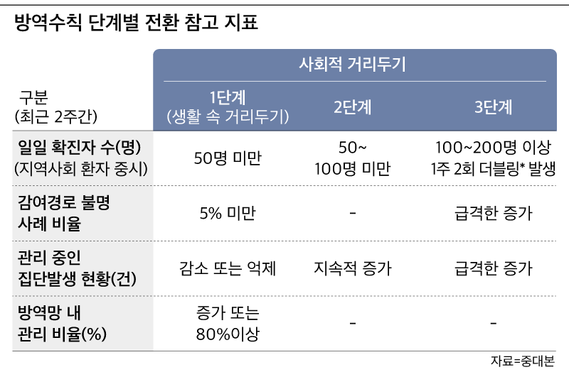 2주간 일일 신규확진자 수가 50~100명 미만 발생하는 경우 해당할 전망입니다.