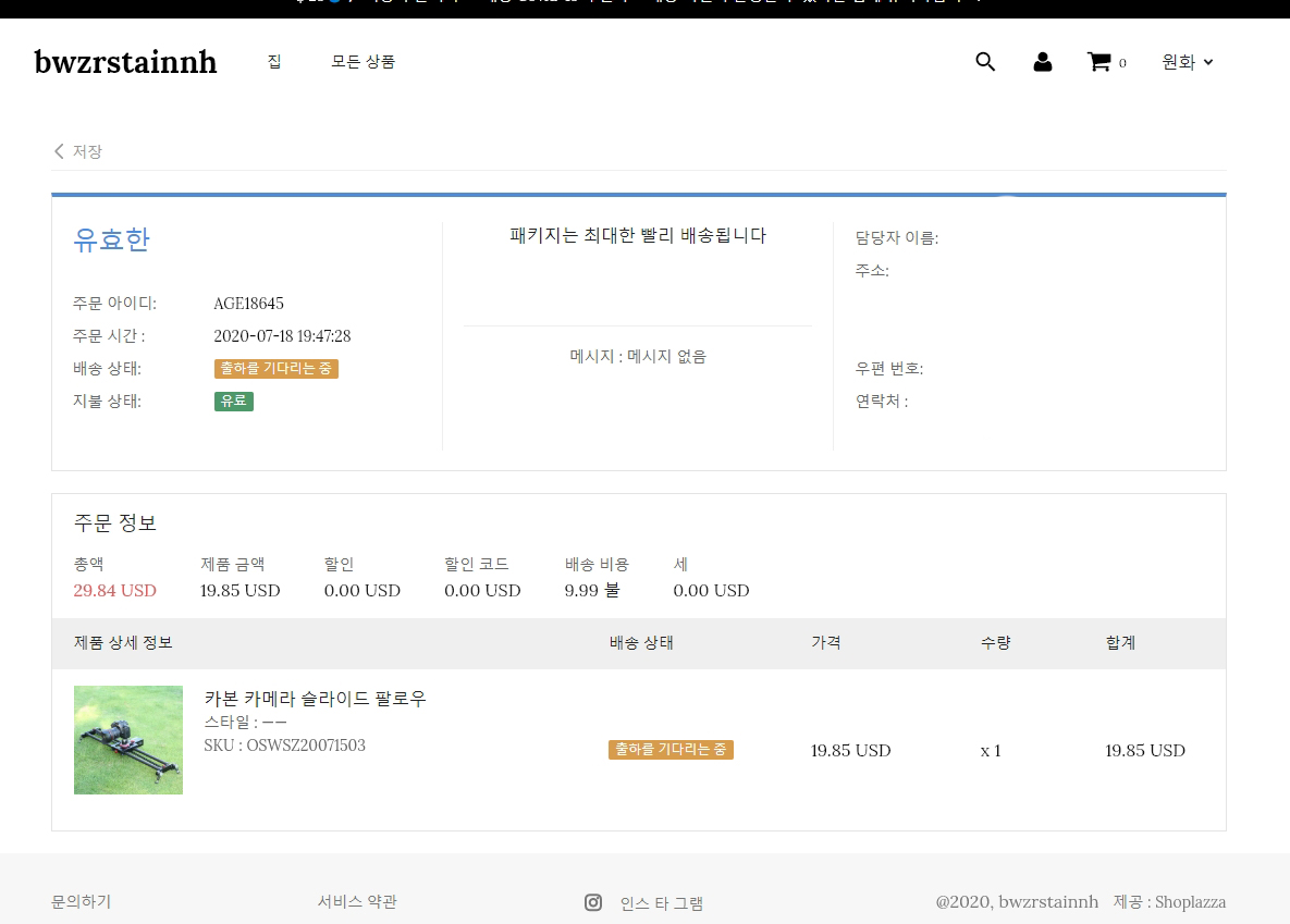 정~말 오래 기다려서 받았습니다. 제가 주문한건 20년 7/18 오늘 8/20에 배송을 받았습니다.