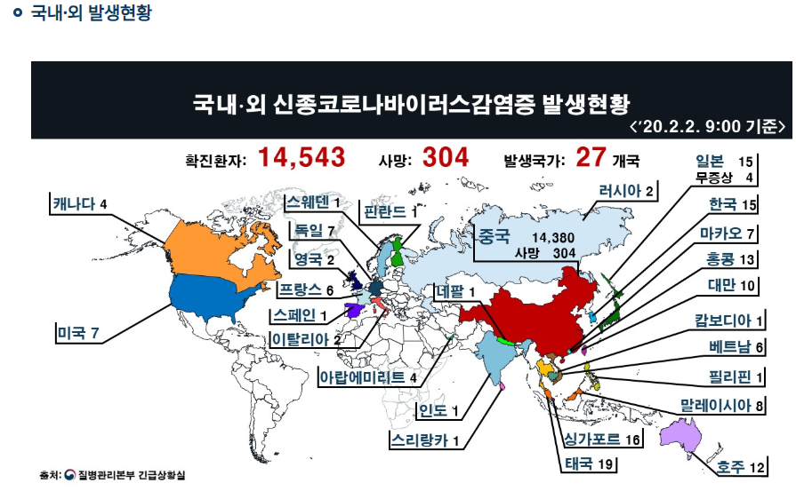 감염병 위기단계 「경계」수준으로 상향하고, 보건복지부에 중앙사고수습본부(본부장: 보건복지부장관)를 설치 운영하고, 질병관리본부에 중앙방역대책본부(본부장: 질병관리본부장)를 확대 운영, 환자감시체계 및 의심사례에 대한 진단검사, 환자관리를 강화하는 등 24시간 비상대응체계를 확대 운영 중입니다.